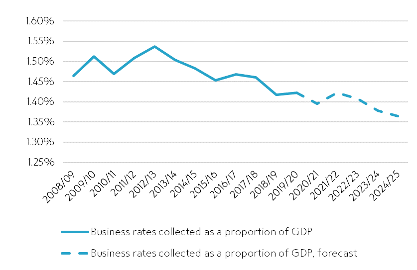 Figure 1: Business rates income has been declining as a proportion of GDP